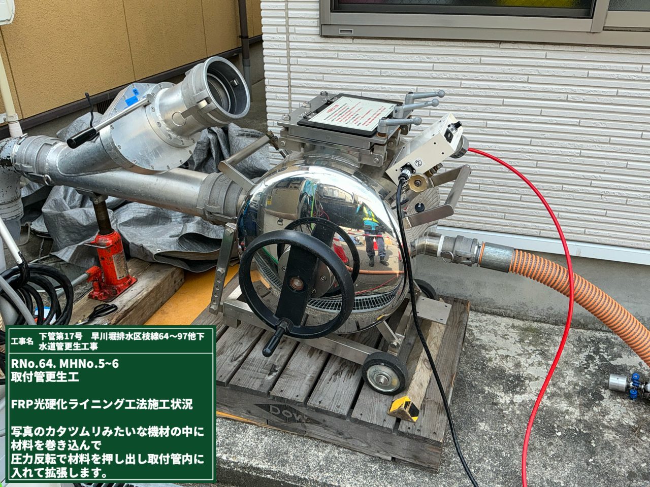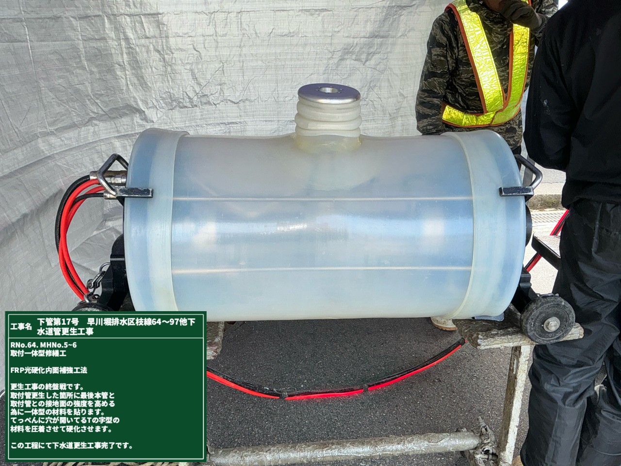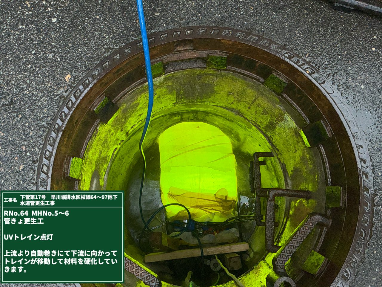 本管更生も終盤。残りはこれまでの光硬化ではなく、別の方法で施工を行います。