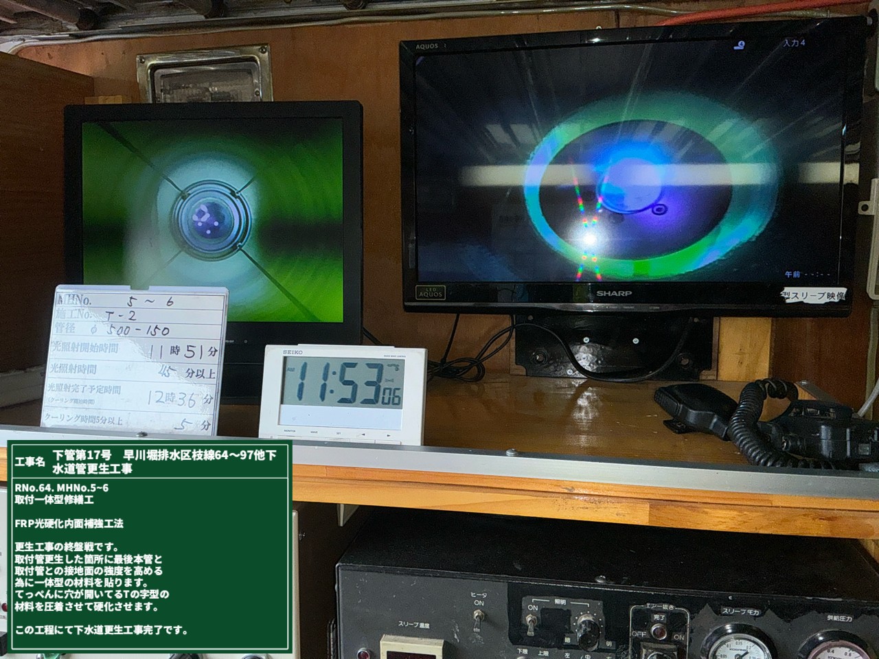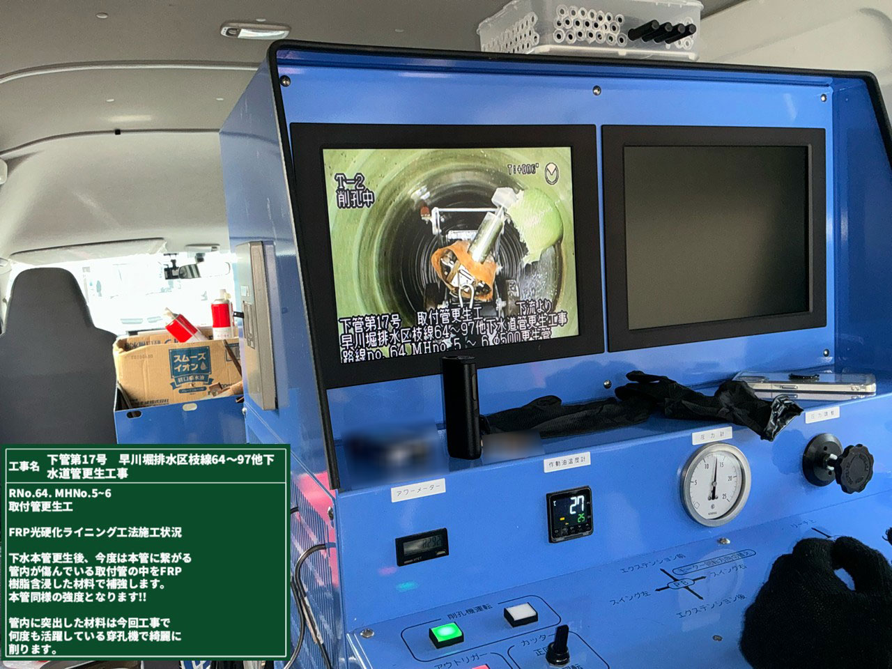 前回の日記で、管の更生工事の様子をご紹介しました!